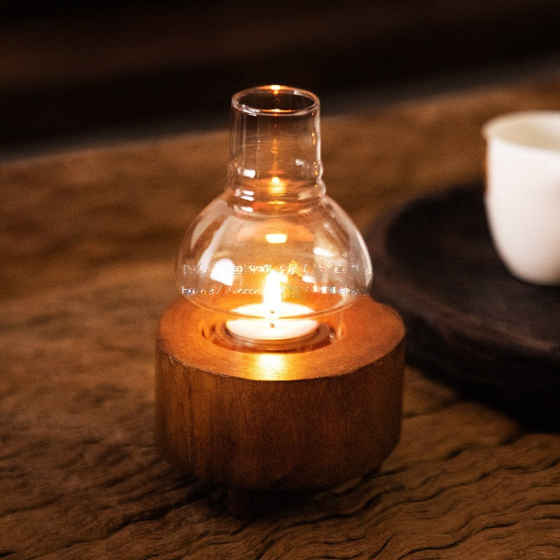 実木香薫ろうそく台座灯復古置物タイ整彫屋外防風ろうそく光夕食雰囲気感燭台