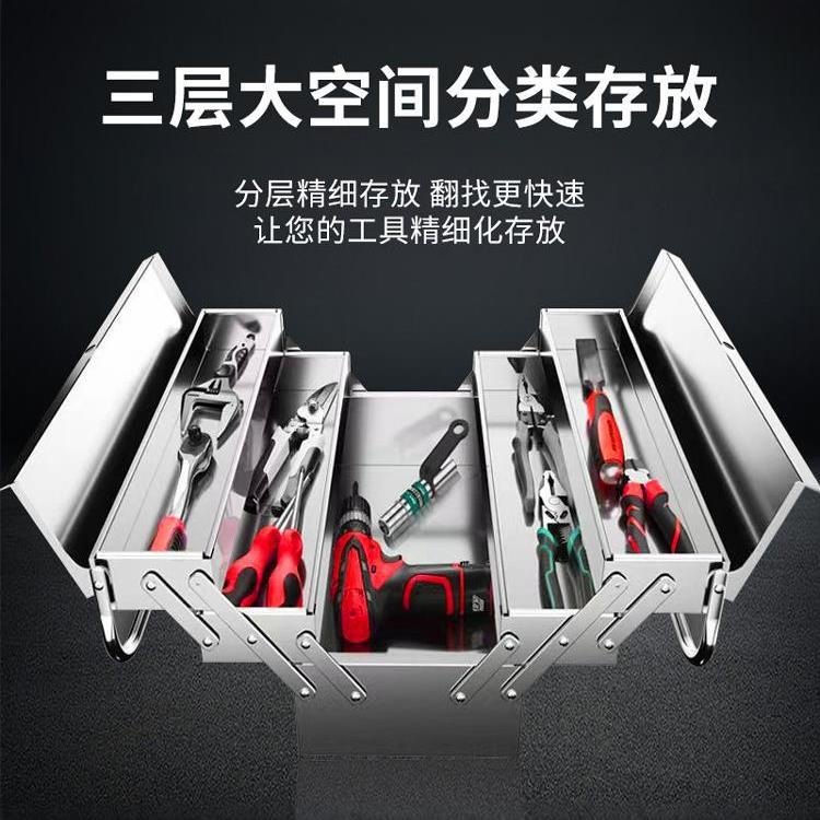 厚いステンレス工具箱三層折り畳み家庭用工業級収納ボックス手提げ整理箱多機能三層