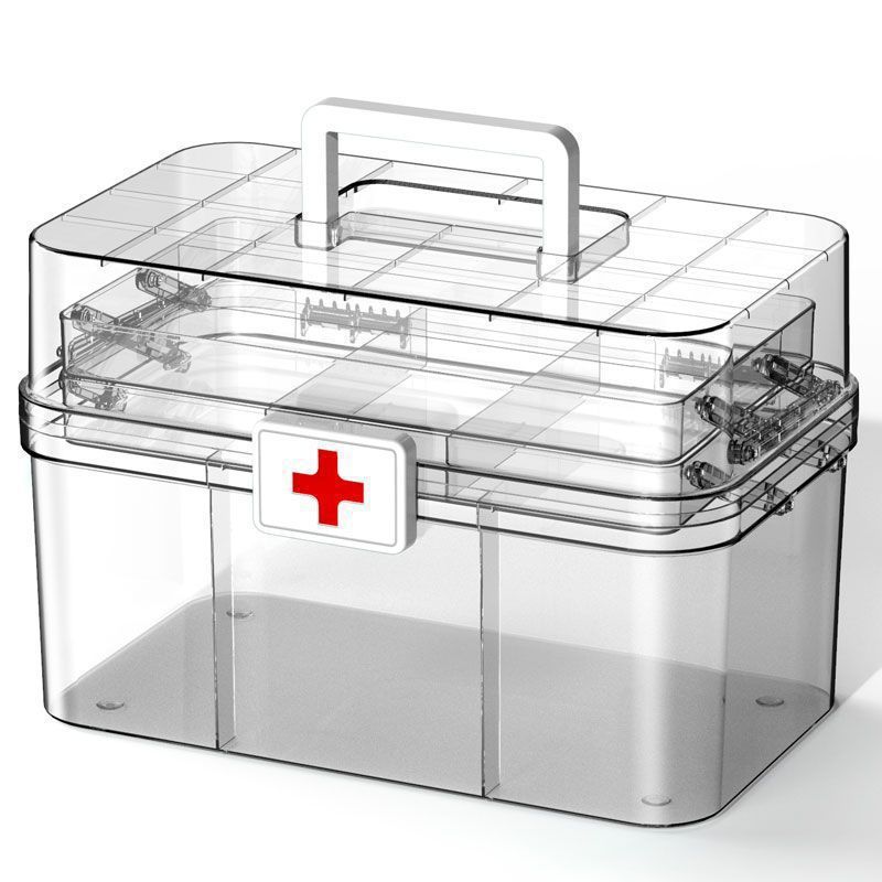 家庭用携帯薬箱収納ボックス多階箱家庭版医薬箱大容量透明薬箱収納代行