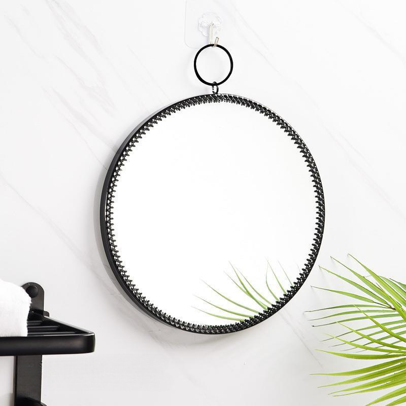 北欧金属鉄芸浴室鏡トイレ壁掛け鏡ins化粧鏡試着鏡幾何学丸鏡