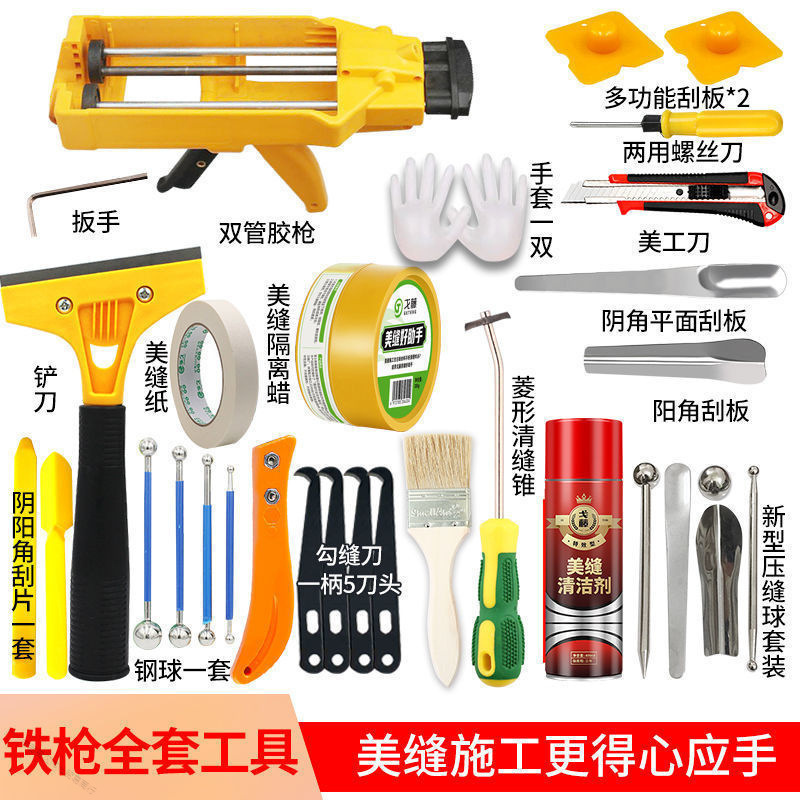シームグルー施工ツール一式セット、シームグルーガン、二重管タイル床タイルオープナー、シームクリアリングコーン、ガンレスパッケージ