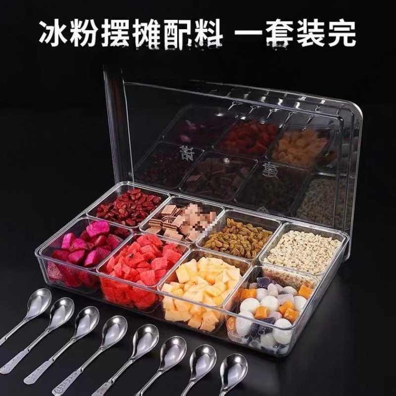 蓋付き氷粉材料、業務用小型材料一体型8仕切りボックス、調味料組み合わせセット、調味料ボックス、収納ボックス、屋台なし