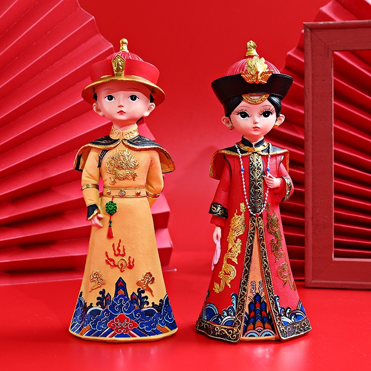 Wenpai 宮殿スタイル皇帝と皇后古代衣装樹脂人形装飾品皇帝人形ホームウェディングデスクトップ装飾