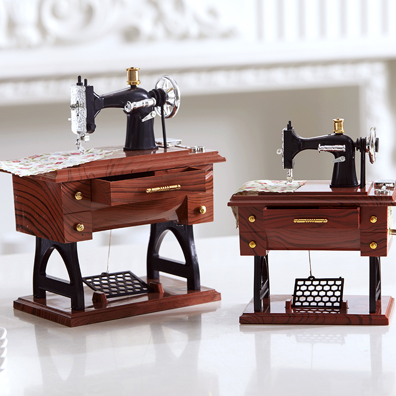 Wenpai レトロノスタルジックなホームアクセサリー装飾品ミシンミシンオルゴールオルゴール本棚装飾品