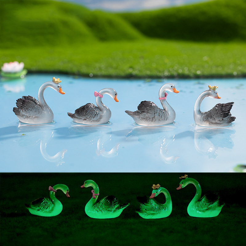 Wenpai かわいい発光リトルスワンペアケーキベーキングデザートテーブルデコレーションミニデスクトップホームデコレーション