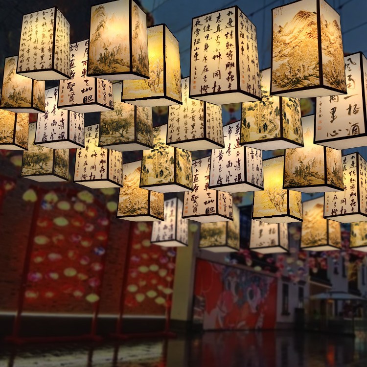 Wenpai 書道と詩 屋外景勝のランタン装飾 B&B ホテル 古代スタイルのランタン吊り下げ装飾 中国風の風景画