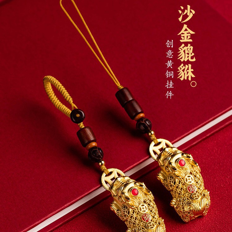 Wenpai 真鍮サンドゴールドレトロ貔貅キーホルダーペンダント車のキーチェーンペンダントカップルバックパック安全ペンダント