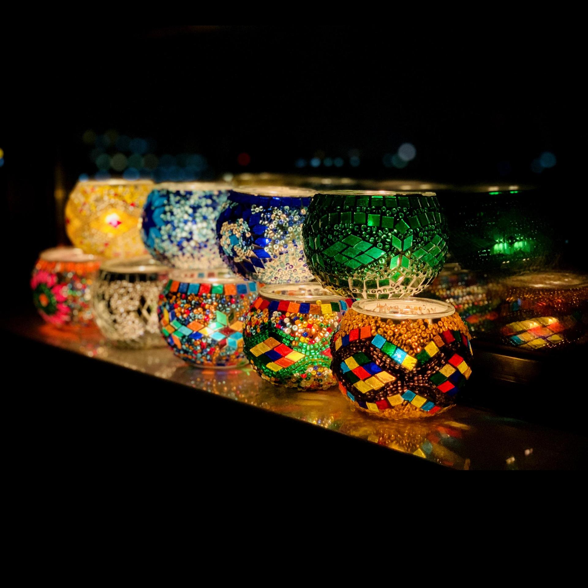 Wenpai モロッコ燭台コーヒーショップトルコレトロモザイク燭台地中海家の装飾ランプシェード