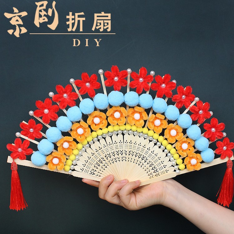 Wenpai 無形文化遺産 DIY 京劇扇子素材パッケージ伝統文化中国風子供用竹扇子作品