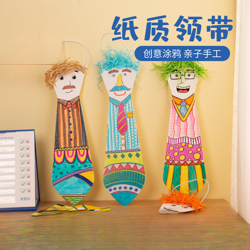聞派父の日プレゼント手作り紙ネクタイ幼稚園児自作塗装クリエイティブネクタイ材料