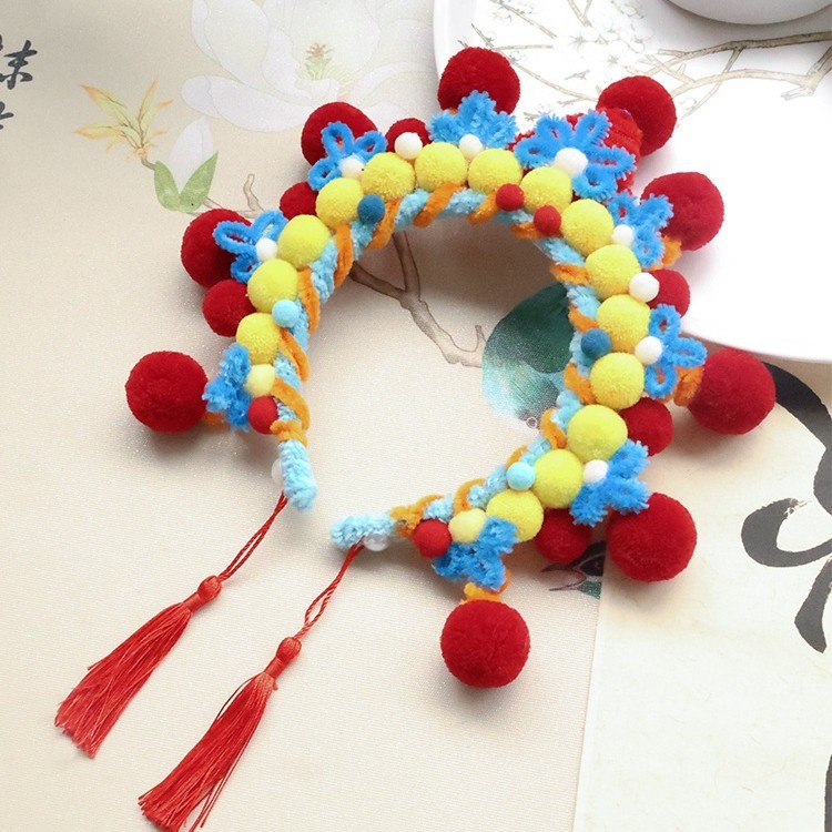 Wenpai 中国風京劇ヘッドバンド diy 材料パッケージ女の子毛玉古代スタイルヘッドバンドヘアピン子供のヘアアクセサリー CG198