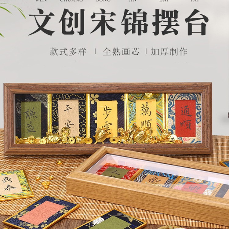 Wenpai 小型ミニ宋錦ハードボール紙書道テーブル装飾品空白フォトフレーム文化的で創造的なギフト中国風ライスペーパー