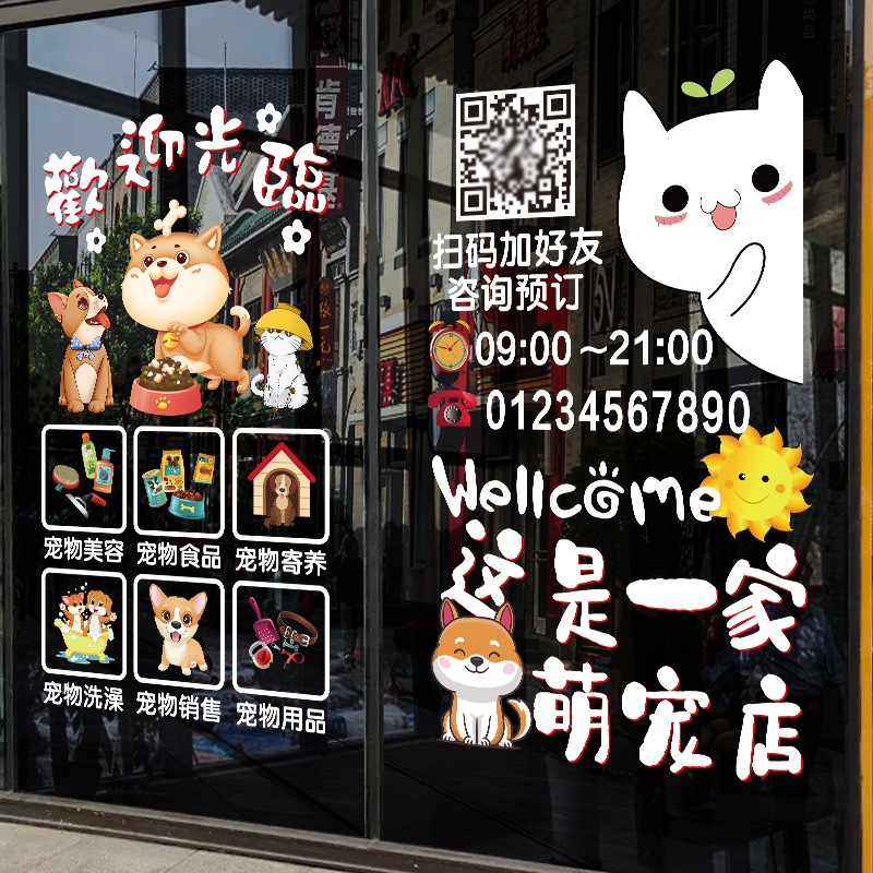 Wenpai ペットショップ装飾ガラスステッカーかわいいペット美容病院ライフスタイルセンター玄関レイアウト窓ドアステッカー静電気