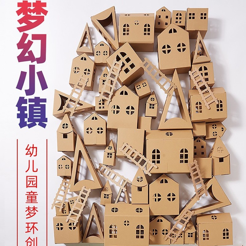 聞い派の夢幻の小鎮の幼稚園の環は区の角のダンボール箱のdiyの小さい家の紙箱の建築材料の模型を創立します。