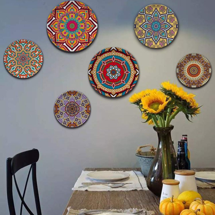 ペルシャ曼荼羅花現代陶磁器盤装飾画トルコ民族風幾何学装飾盤