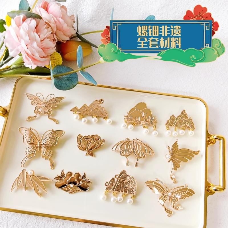 聞派サロン手作蝶山川材料非遺留螺ブローチピンDIYセット材料diy団建
