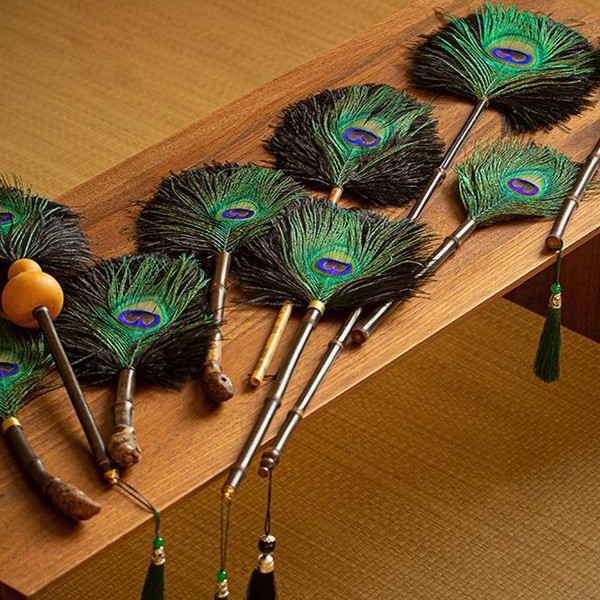 クジャクの羽のほこり取りは紫竹の根のダチョウの毛を払います。