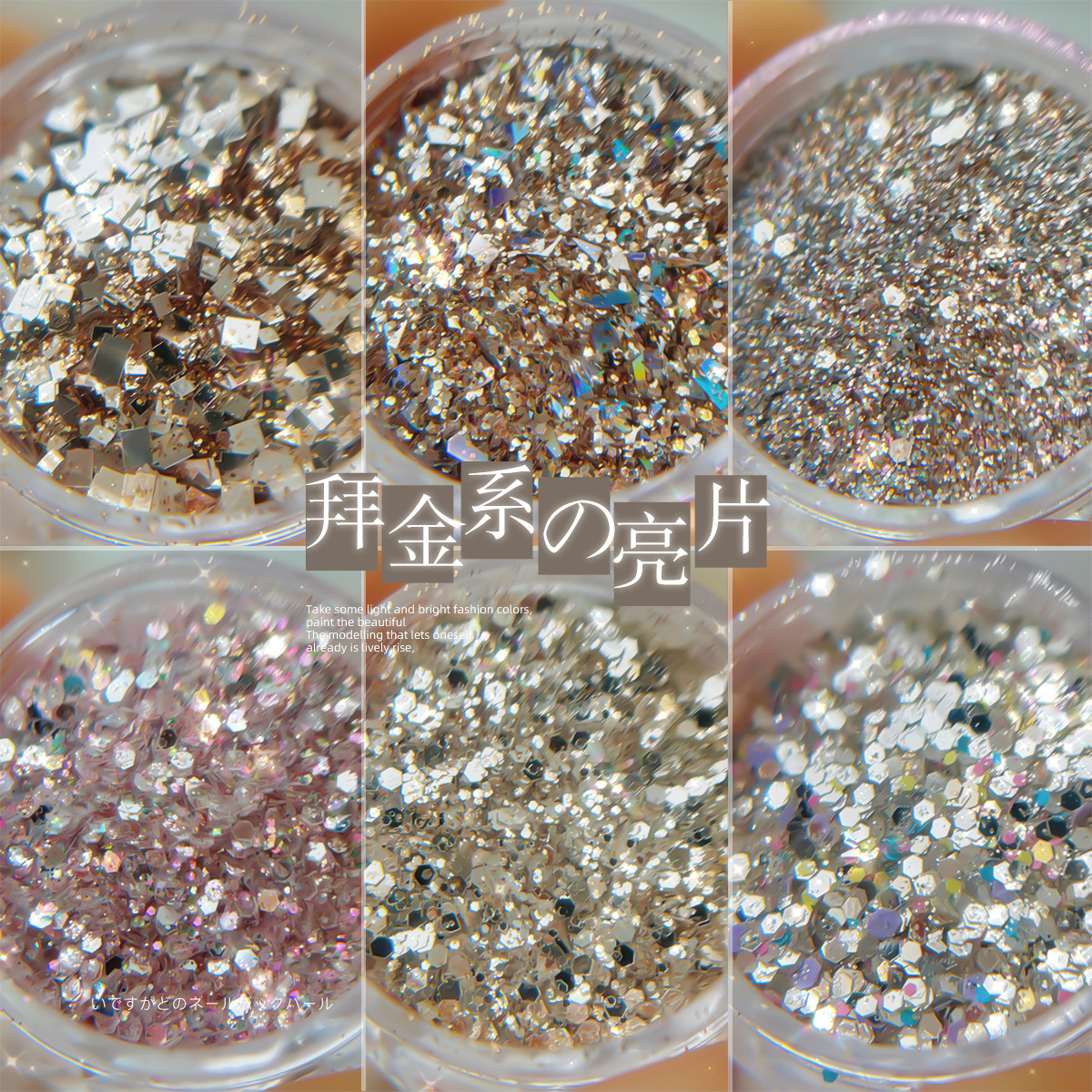 ネットの赤い爆発物の拝金の女性のフラッシュの明るい切れの超フラッシュのハイライトの不規則な混合のパッチの粉砕のドリルの粉のネイルアートの装飾品