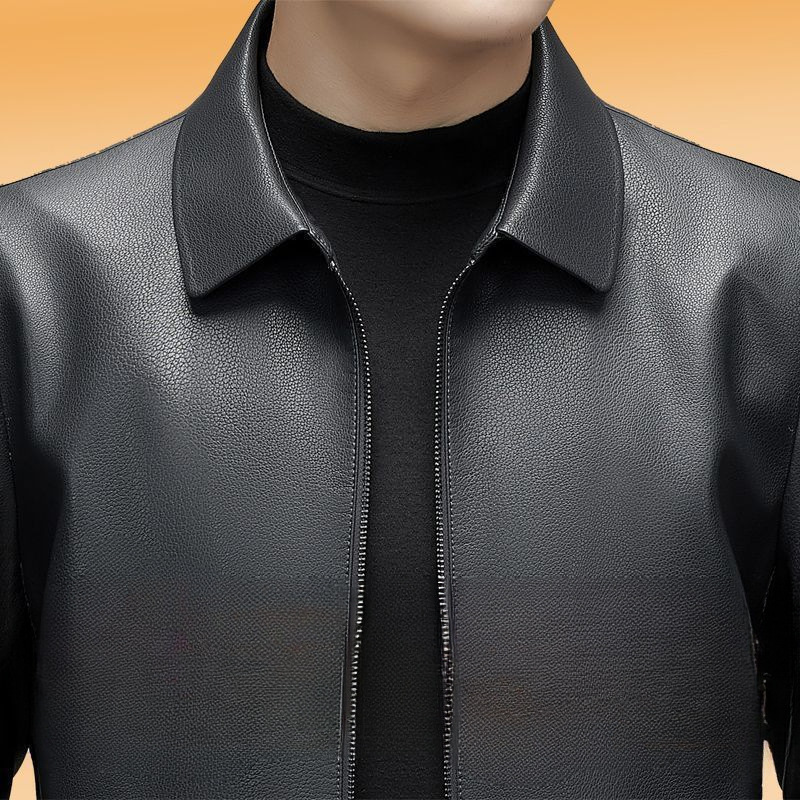 男性の皮の服2025春秋の新型のスーツのカジュアルコートの大きいサイズのベルベットの厚い襟の修身の皮のジャケット