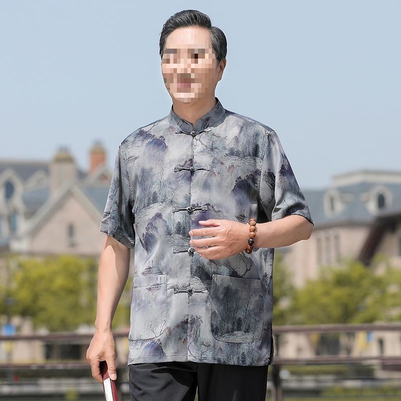 氷糸唐装男性中高年半袖シルク中国風父カジュアル大サイズ夏祖父装漢服