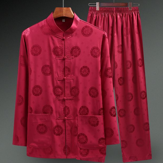 唐装男長袖中高年男服セット中国風老人服男ゆるいおじいちゃん太極服パパ服