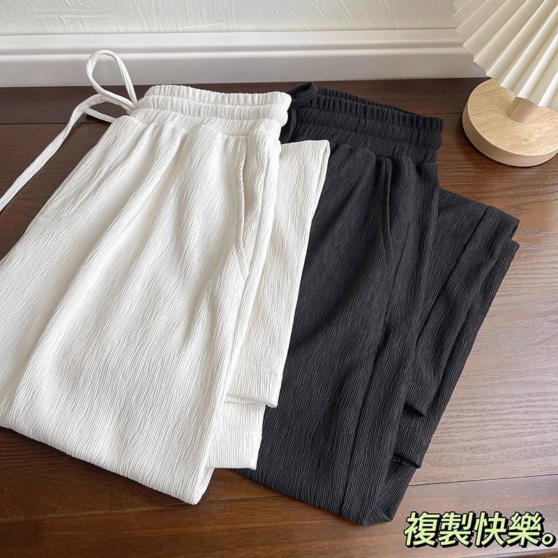 夏のアイスシルクカジュアルパンツメンズ春夏ウエストゴムロングパンツストレートスリムトレンディ薄手のズボン男性用