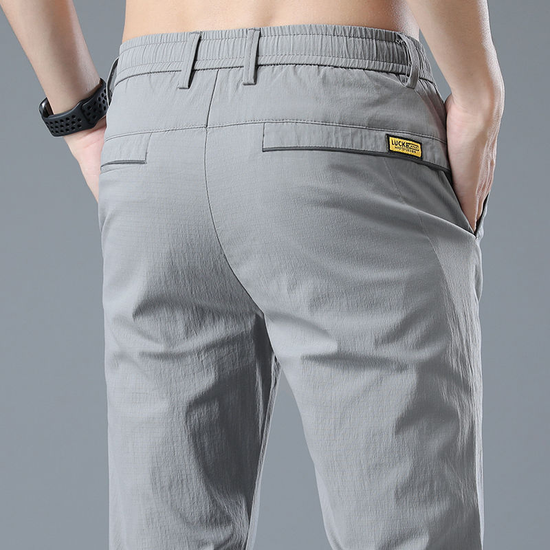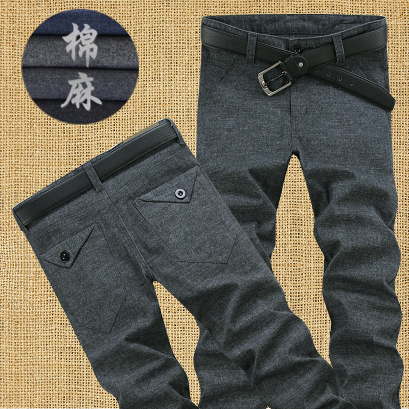 春の夏の男性のカジュアルなズボンの薄い弾力性の綿麻のズボンの紳士服の青年の修身のまっすぐな筒の百合の新型の男性のズボン