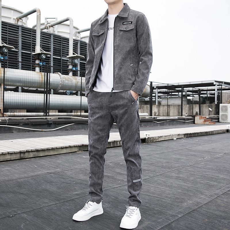 コーデュロイ秋ジャケットスーツ衣装セットメンズカジュアルジャケット韓国版スリムフィット若者男性ツーピーススーツ