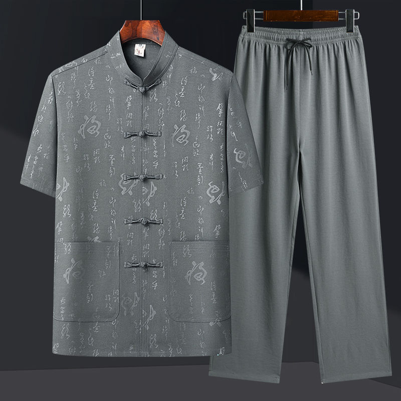 新中国式男性半袖スーツカジュアル薄着夏服中高年者漢服中国風メンズ新中国式メンズ