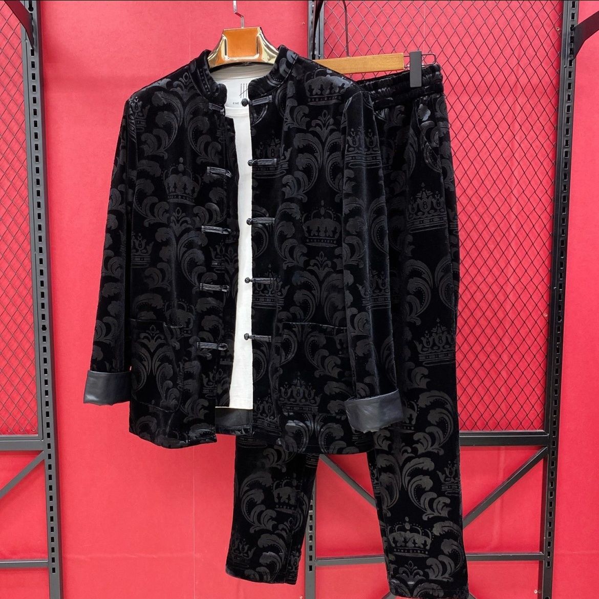 春秋冬の男性の新型唐服セット立襟漢服中国風上着ズボン国潮二点セット