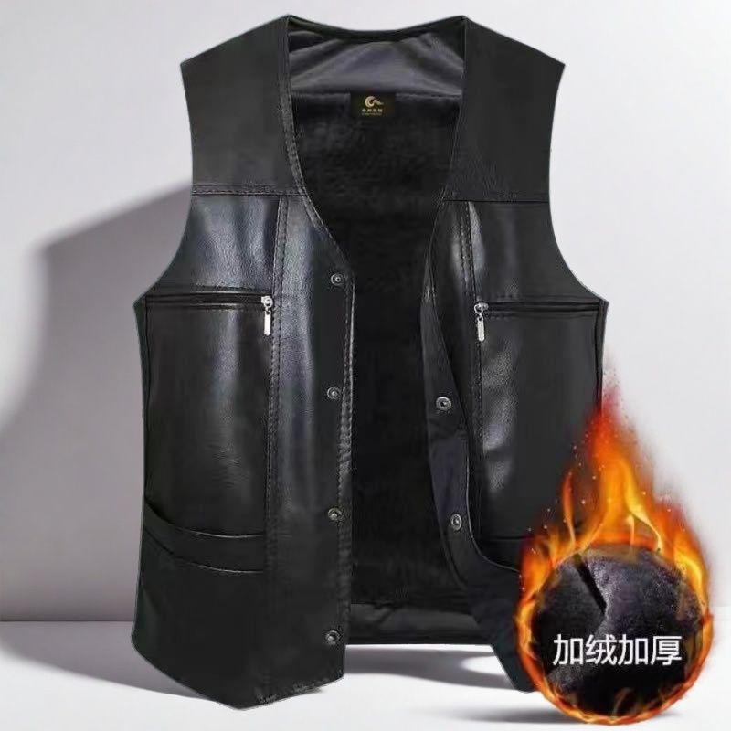 海寧真羊皮馬甲毛一体加熱ベルベット男性冬コート男性ノースリーブカン肩皮服老人服