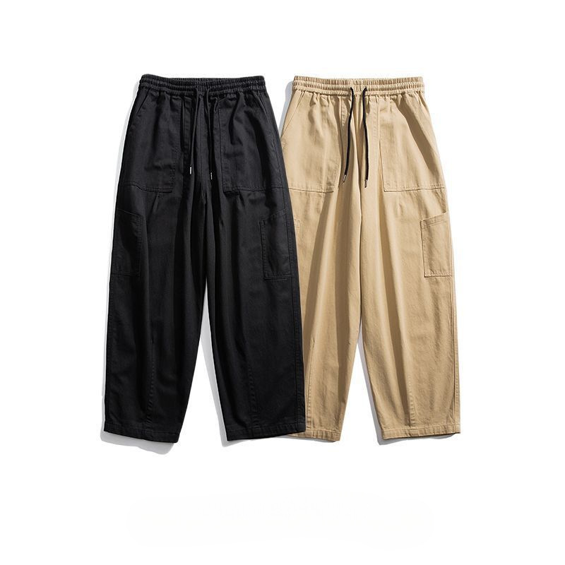 工装ズボン男春夏薄いストレートゆるい日系カジュアルパンツ復古アメリカ街頭スケートボードパンツカーキ色