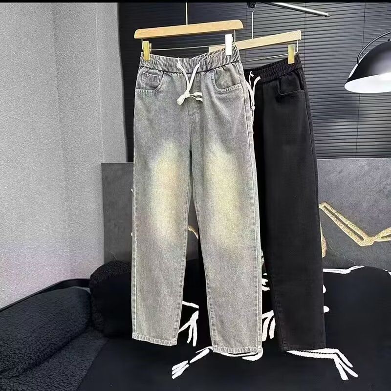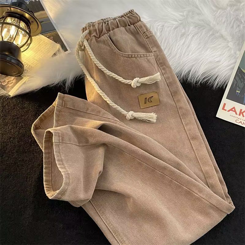 ジーパンの男女の秋の薄い金のゆったりしているまっすぐな筒の9分のズボンの潮流の百合の高い街の潮のブランドのカジュアルな広い足のズボン
