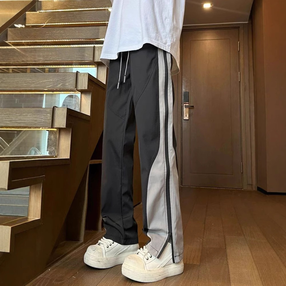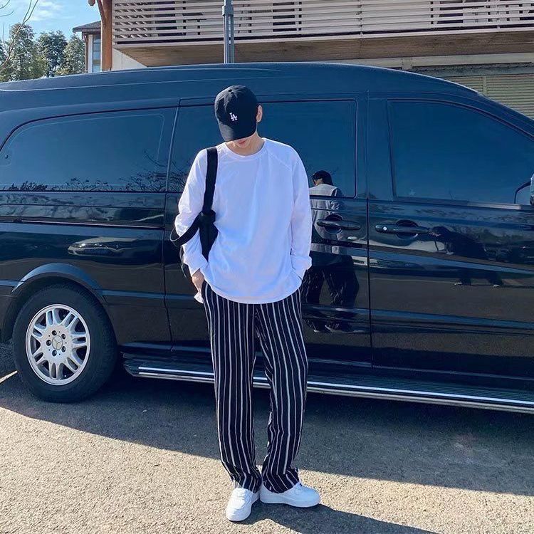 潮牌2021夏の薄い太もものズボンの男性のペンダント感のあるストライプのズボンのゆったりしたカジュアルなズボンのストレートのファッションのズボン