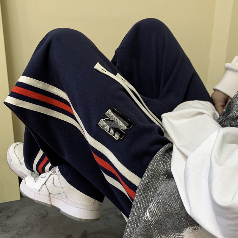 ヒップホップアメリカ式ステッチ工装ズボン男性春秋潮牌hiphop運動カジュアルズボンゆったりとした広脚モップ地ズボン