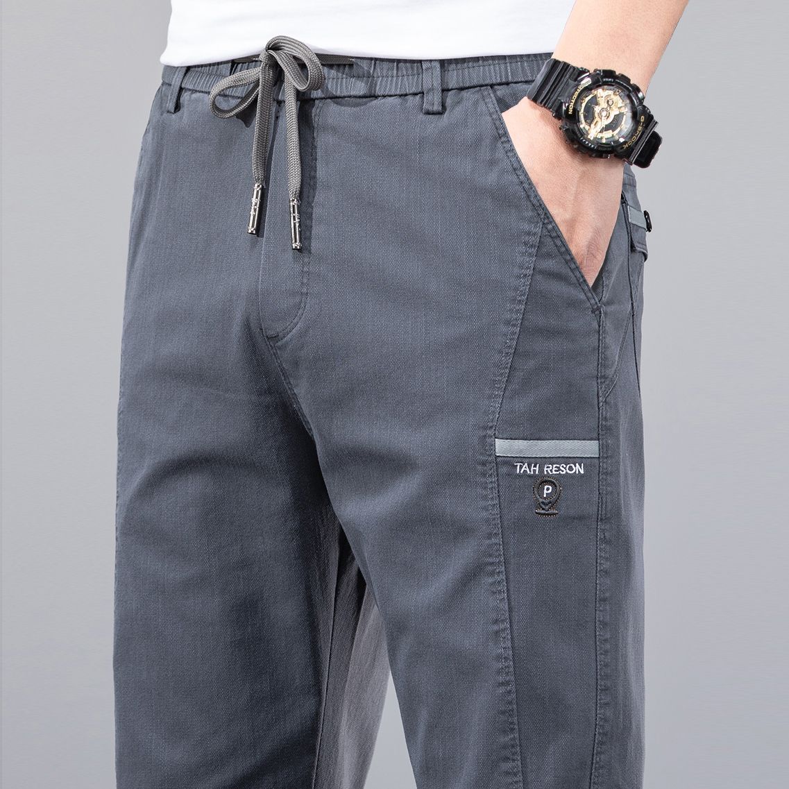 軽くて豪華な夏の薄いタイプの青いカジュアルなズボンの男性のタイプの宇宙綿の感は色のウェビングにぶつかって体を修理します。