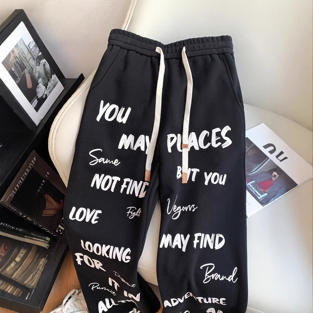 アメリカの街頭の個性的なアルファベットのプリントのカジュアルなズボンの男女の春の新型の大きいサイズのまっすぐな筒のゆったりしている感じのスポーツのズボン