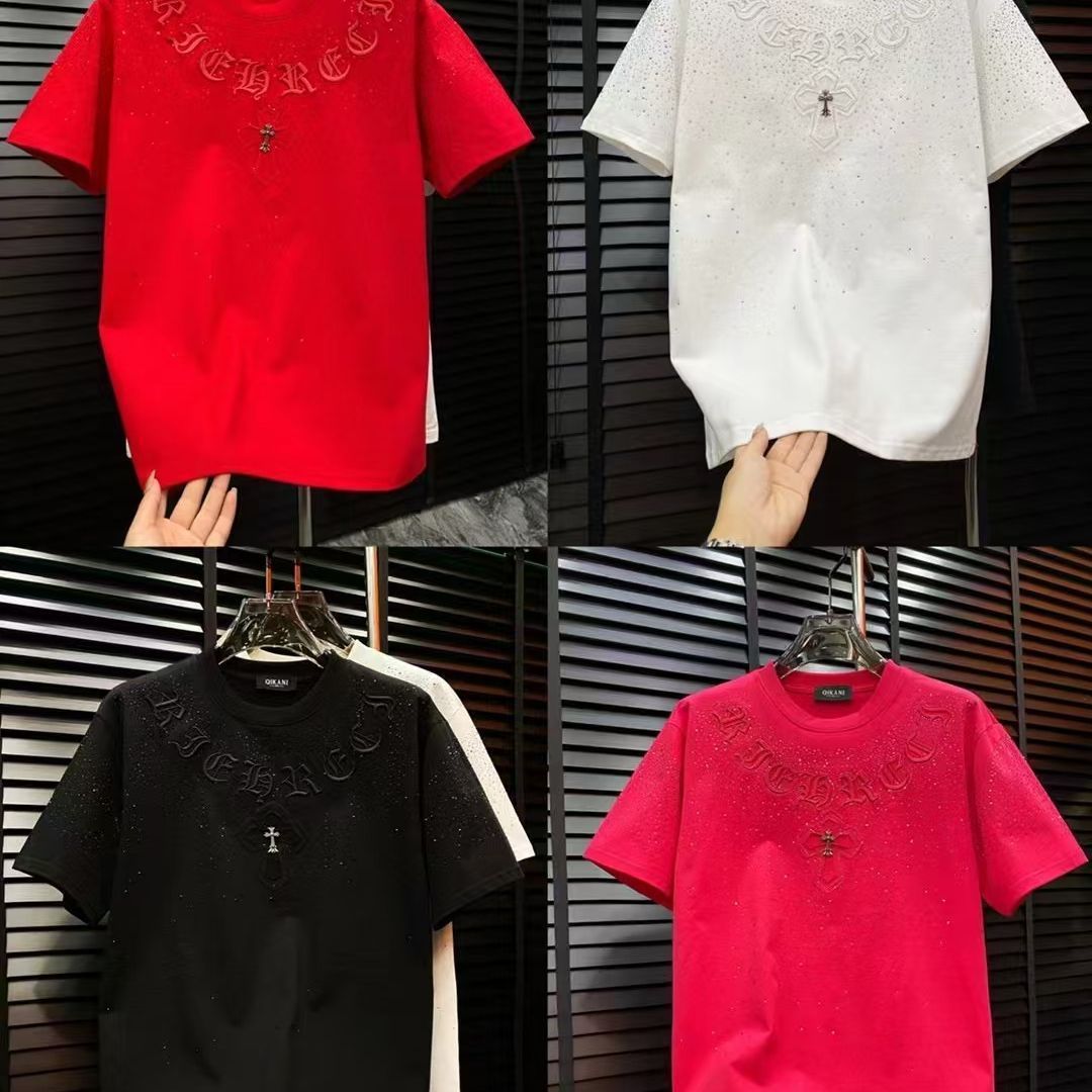 秋冬ファッションブランド男女金属クロス丸首カバー半袖tシャツカップルゆったりカジュアル満天星半袖