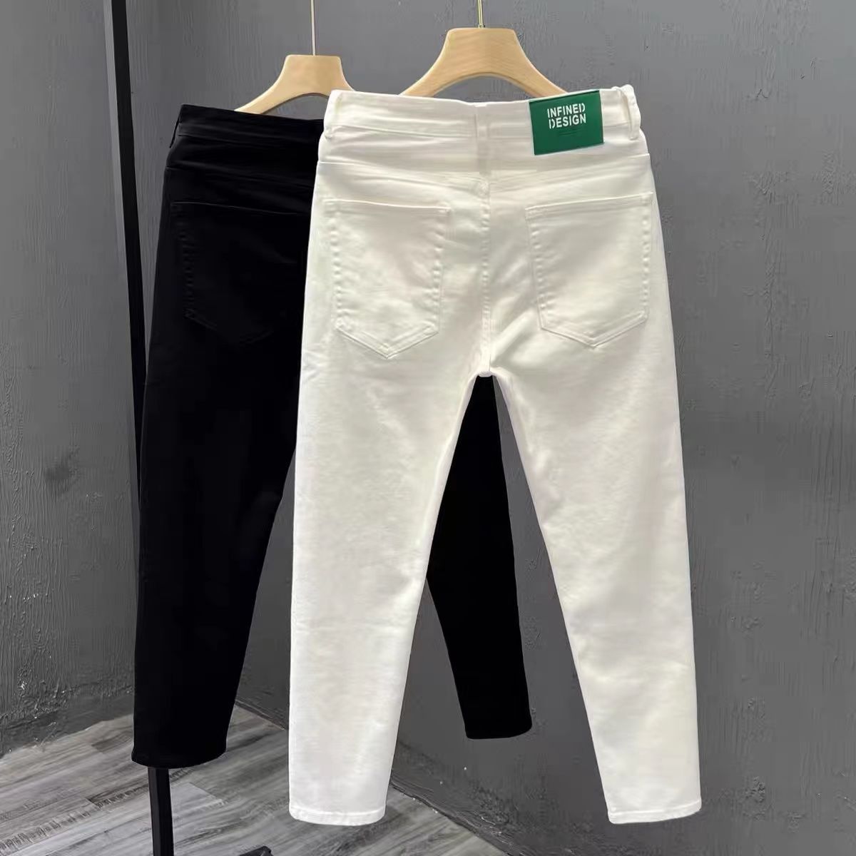 高品質の純色のジーパンの男性の新型のファッションブランドの修身の小さい足のズボンの男性の精神の若者の白いカジュアルなズボン