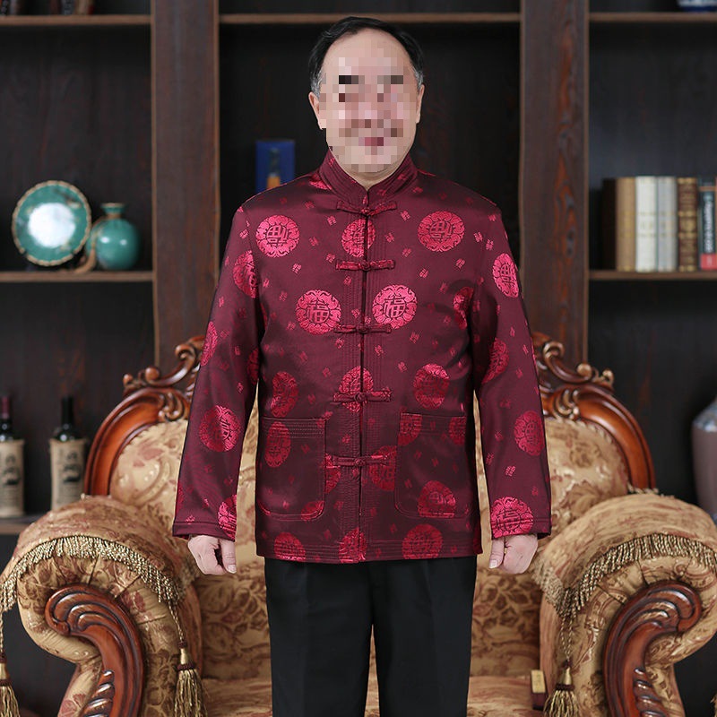 老人服の男性コートは60歳70歳で誕生日を過ぎた唐装男性祖父の中高年秋冬タイプの父親上着