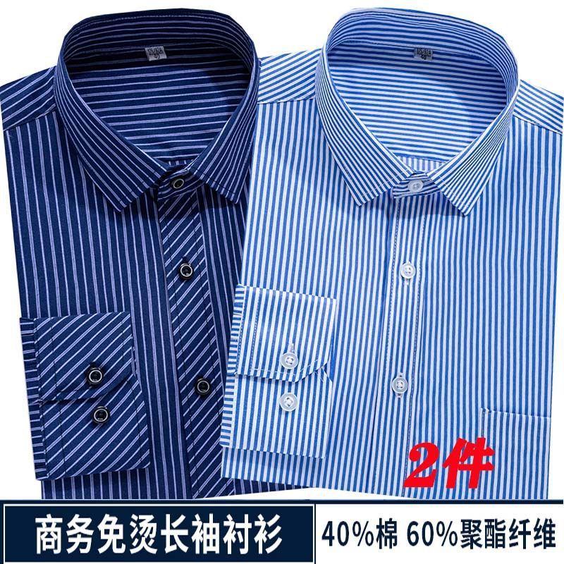 メンズ長袖シャツ春夏薄手カジュアルビジネス無熱職業シャツ中年工装縞寸シャツ男