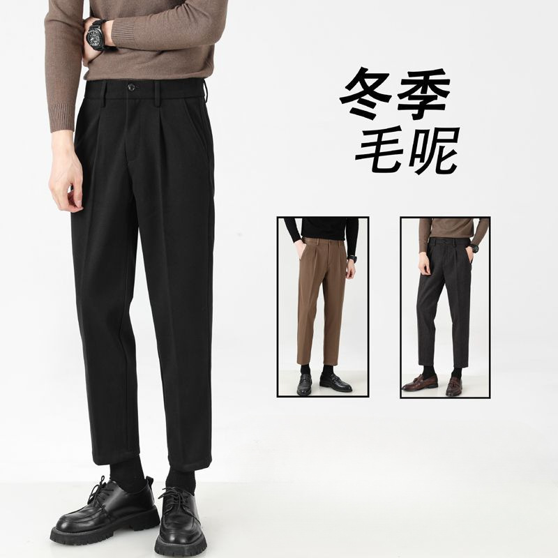 男性の冬の流行は、ベルベットのカジュアルパンツ冬の韓国版潮牌直筒九分スーツパンツを厚くしている