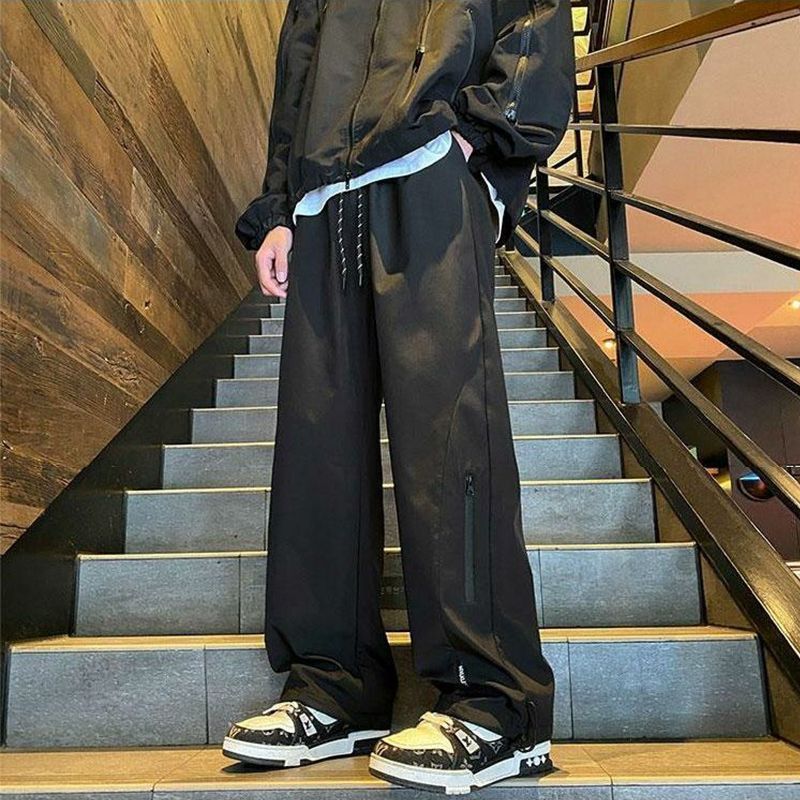 2024新型春夏秋新型ゆるいカジュアルパンツ男性韓国版トレンド百合ズボンのペンダント感ストレートパンツ男性