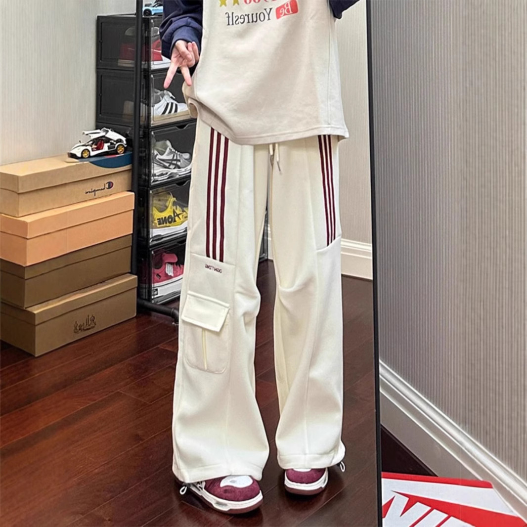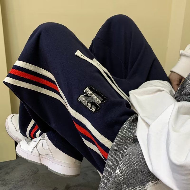 スポーツストライプのカジュアルパンツ男性のゆったりとした広い足のファッションブランドのストリートダンスのアメリカ式hiphop衛ズボンの垂直感のあるストレートの工装ズボン