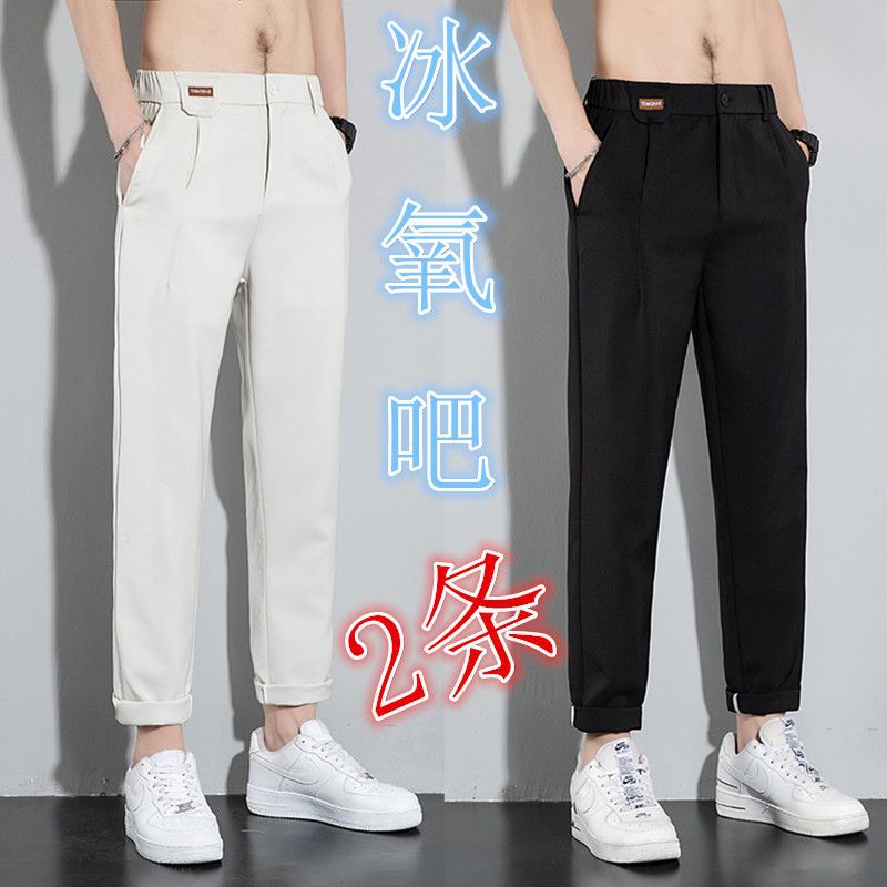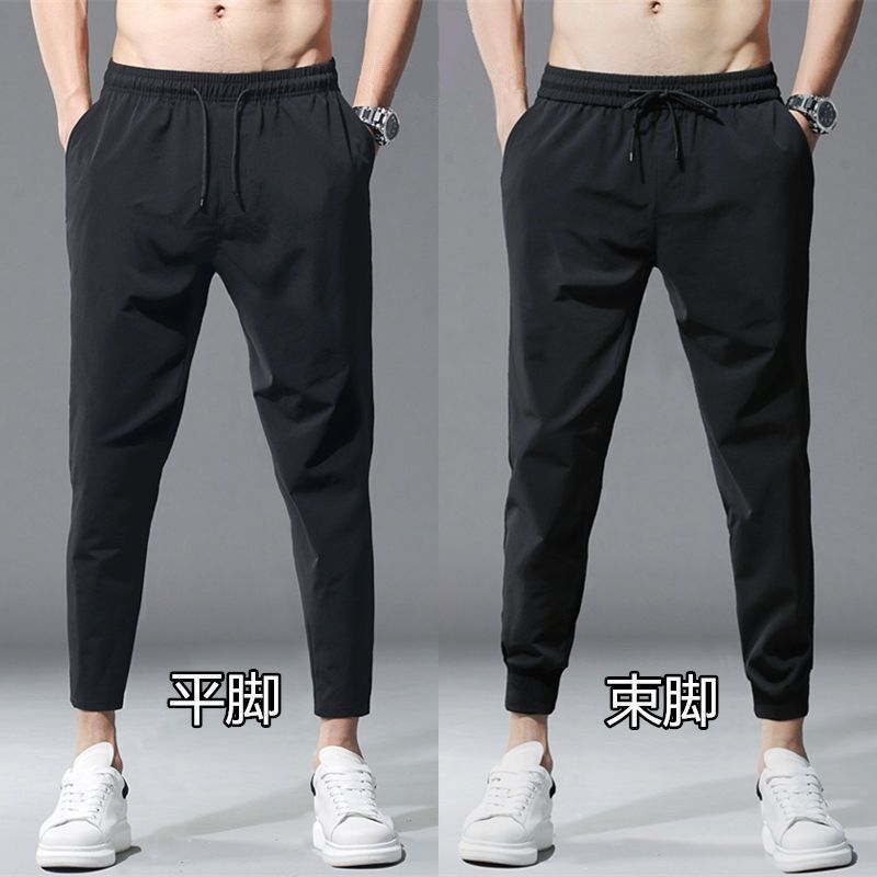 夏の氷の糸の9分のズボンの男性のカジュアルなズボンの男性の青年の足首のズボンの小さい足のズボンの平足の弾力性の薄い金