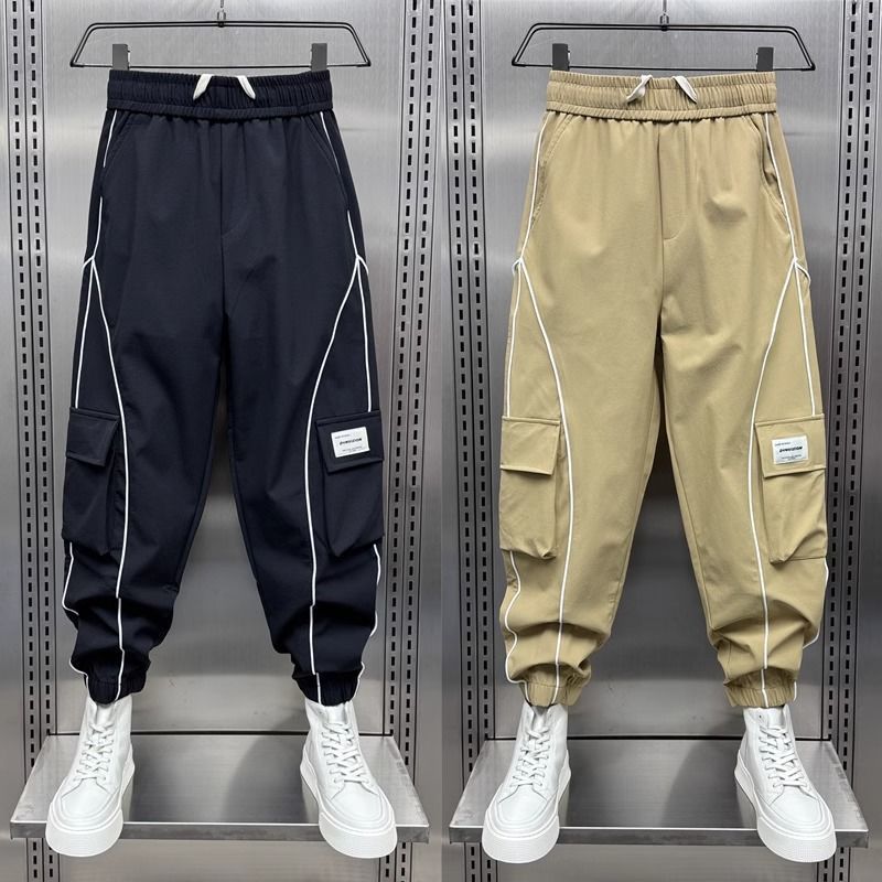 工装ズボン男春秋修身潮流百合9分網紅九分ズボン束足潮牌青少年カジュアルパンツ