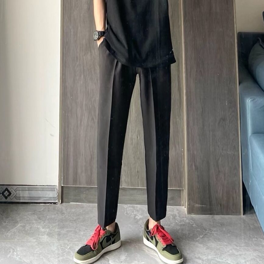 日本のレトロなファッションのカジュアルなズボンの男性の夏の新型のファッションのストレートな筒のゆったりしている小さい大衆の垂れ下がっている感じの仕事の服装の百合のズボン