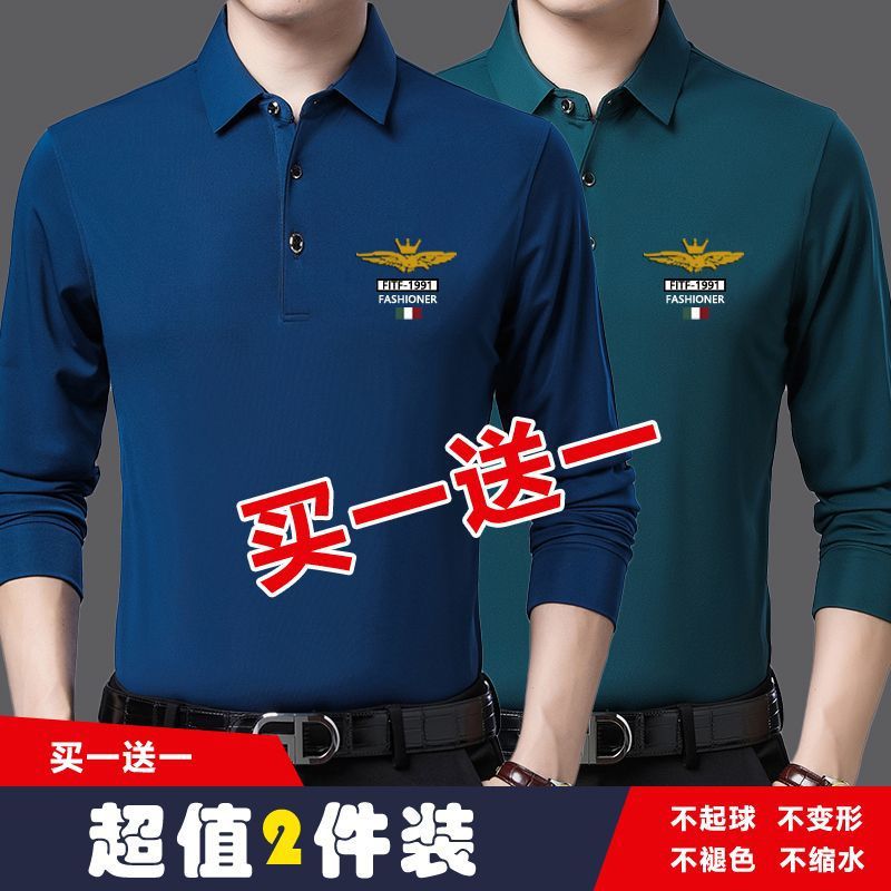 長袖折り襟tシャツ綿質底poloシャツ春秋中年カジュアル純色お父さん服1/2