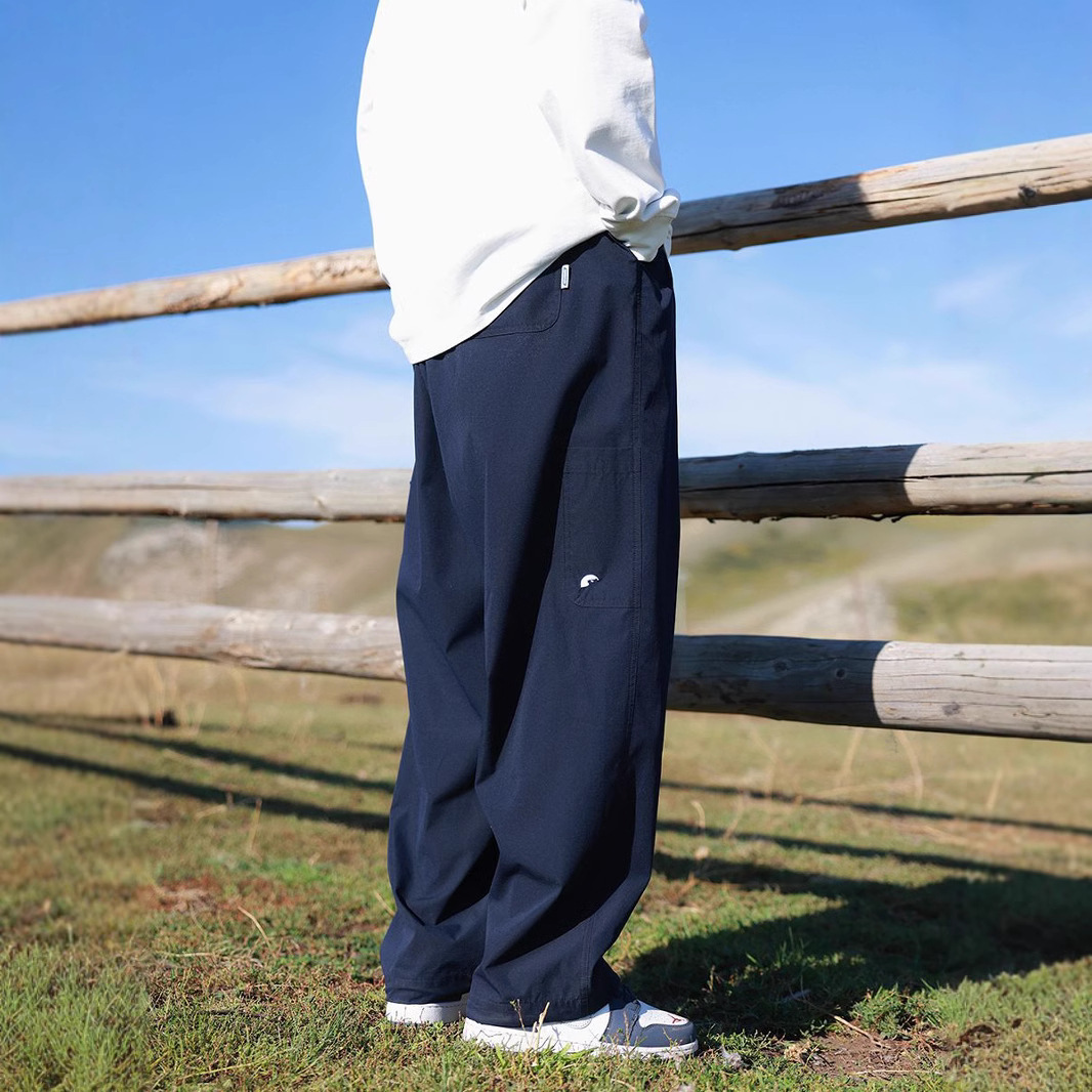 日本系レトロ男性工装ズボン春夏薄型ストレートカジュアル長ズボン潮牌ゆるい九分ズボン