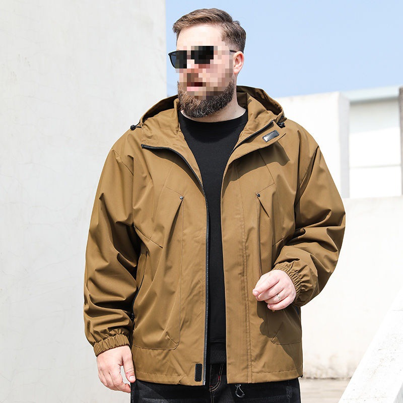 新しい春と秋のジャケット男性のファットマンプラスサイズスポーツカジュアルジャケットファットマンルーズ薄いフード付きトップ